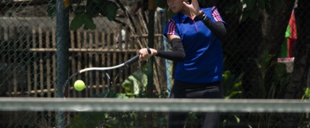 KONI Kota Depok 15 September 2014-Matahari bersinar tepat diatas kepala namun tidak melemahkan semangat Nadia Sekar Ayu Atlet Tenis lapangan putri kota Depok untuk bermain menghadapi pertandingan uji coba melawan atlet dari Kota Bogor