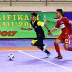 Berturut-turut menambah satu lagi kekalahan bagi tim futsal putra Kota Depok setelah tendangan menyamping Fajrian kembali membobol gawang yang dijaga iman posisi menjadi tiga nol untuk tim Kab Karawang.