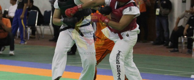 PORDA Kab. Bekasi Jabar, 17 November 2014 – Tim tarung derajat Kota Depok di hari keenam PORDA Jabar XII memastikan menyumbang medali perunggu. Hal itu tejadi setelah di partai semifinal kelas 81 kg keatas atlet Depok Bagas Anugrah kalah atas Yogi dari Subang di GOR STTD Cikarang, Senin (17/11).