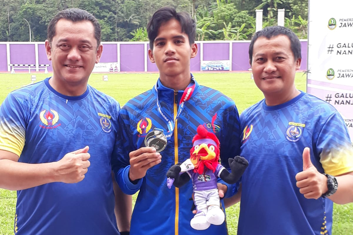 KONI Kota Depok, Lapangan Lingga Buana, Kab. Ciamis, Sabtu (12/11/2022) – Tampil lepas, Muhamad Fachri melayang di udara menyuguhkan medali perak untuk Kota Depok di nomor lompat jauh putra deng...