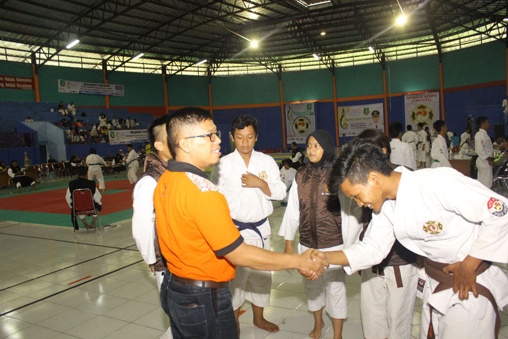 Sukabumi – Kabid Binpres KONI Depok Sujarwo memberikan acungan jempol pada para atlet Depok yang tampil di Kejuaraan Kempo se Jawa Barat memperebutkan Piala Walikota Sukabumi yang berlangsung mu...