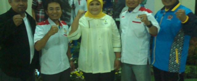 Bersama dengan itu hadir juga Bupati Kab Bekasi dr. Hj. Neneng Hasanah Yasin menyambut para tamu dari KONI kota dan kabupaten sejawabarat yang akan berlaga dan memeriahkan acara PORDA sejawabarat